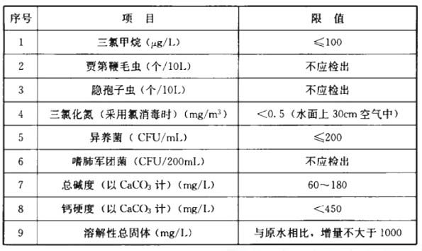 1 我國游泳池初次充水和補水水質要求